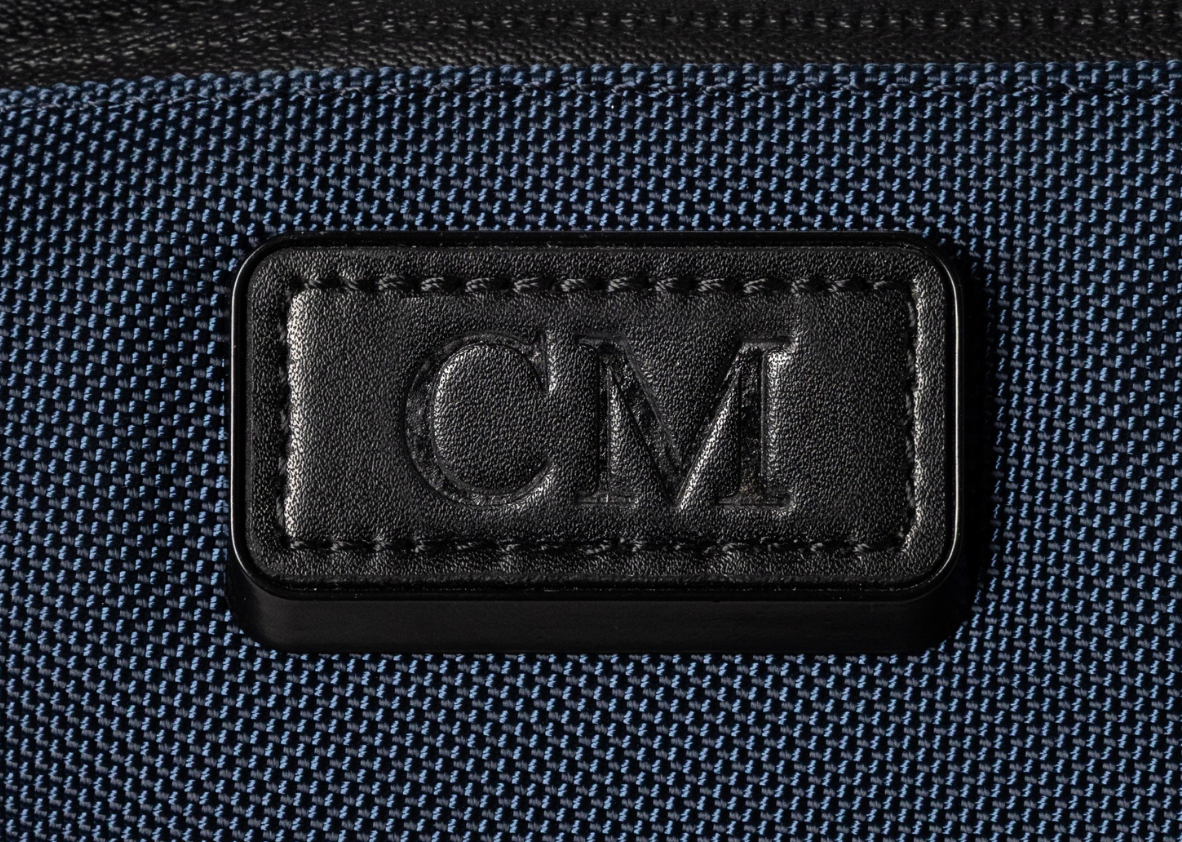 - Exterior: 600D nylon with saffiano-style texture and PVC coating, available in black or navy blue