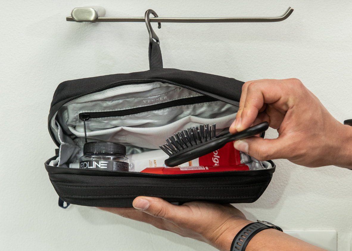 Yes. Since spills are always a possibility inside a toiletry bag, we added an exterior compartment designed specifically for items like electric shavers or grooming tools, keeping them separate and protected.