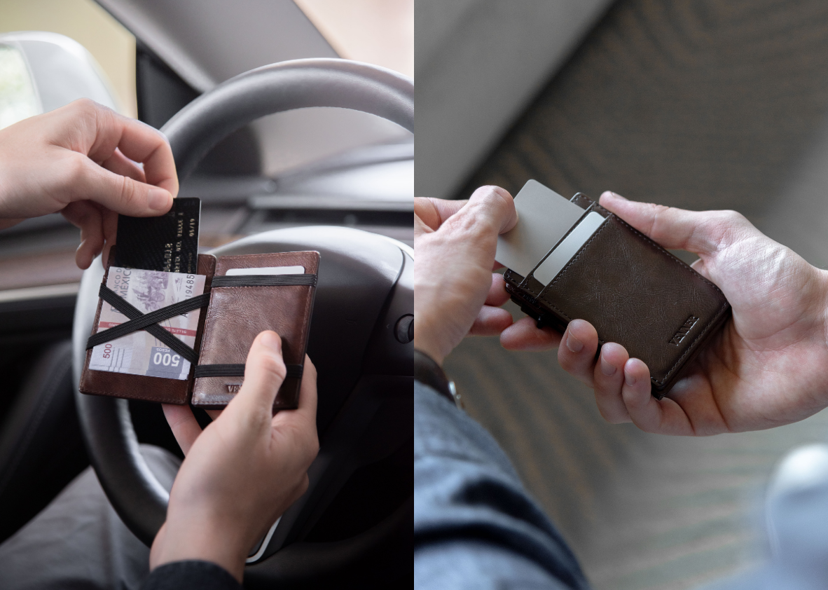 We bring together style and innovation. Merging our successful Magic Wallet and Switch Wallet models, the Venner Wallet offers the elastic system to store your bills in the most efficient and unique way and at the same time offers card ejection just like the Switch Wallet. A unique design on the market.