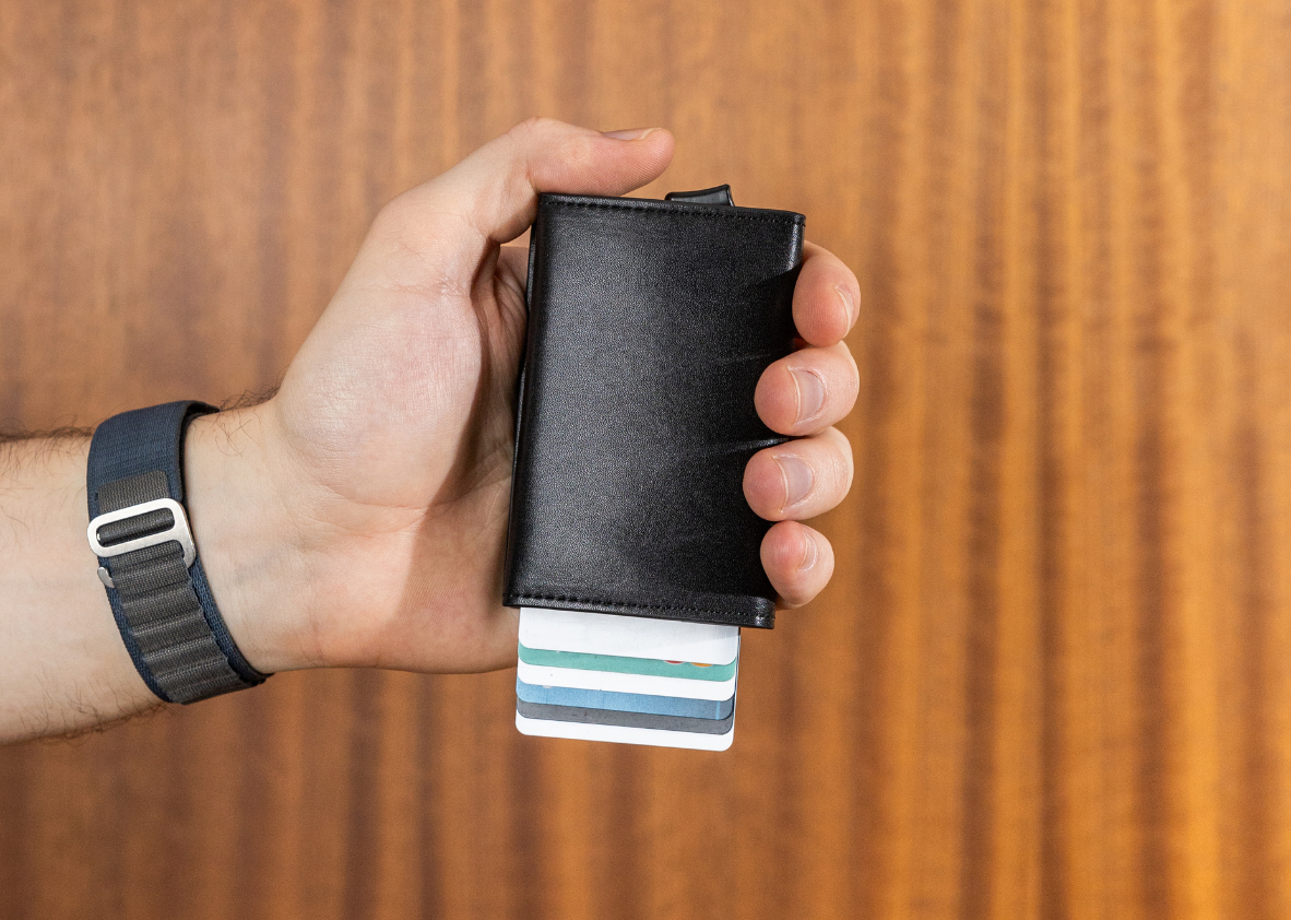 The Switch Wallet features a card ejector and additional slots where you can store around 10 cards. It also has space for more than 10 bills.