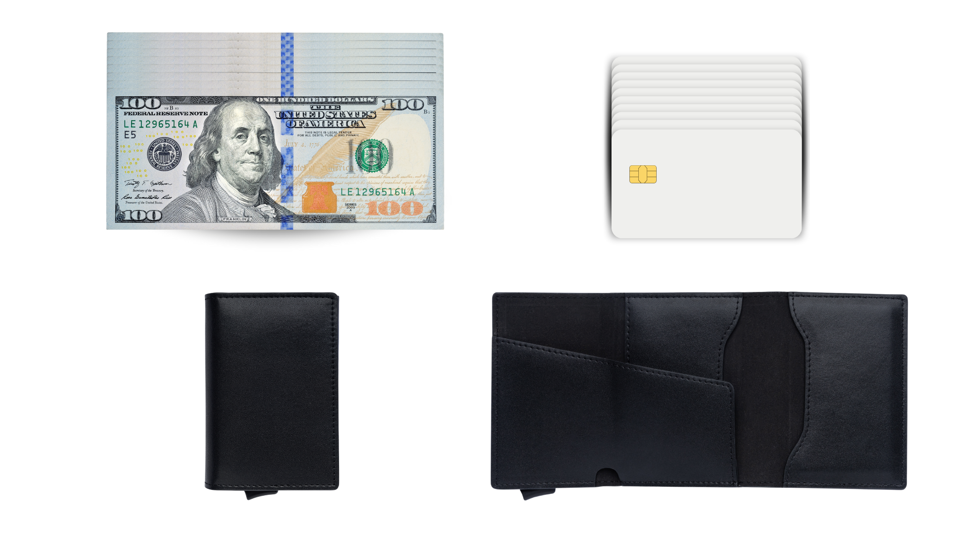 With our high-tech card holder, you can flip your wallet over with cards inside and they won't fall out.