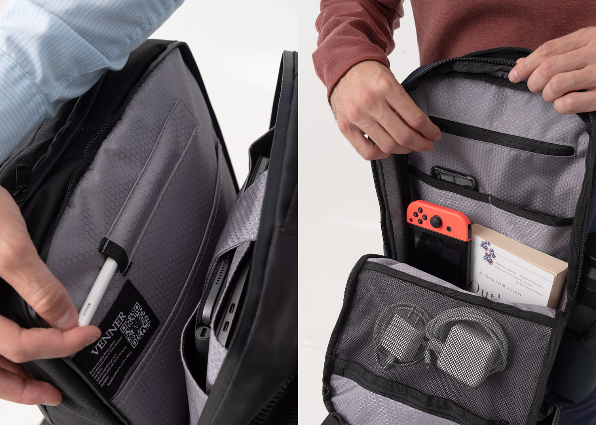 Find your backpack at any time thanks to the dedicated AirTag compartment. This space is specifically designed to keep your AirTag protected and hidden, allowing you to track your Venner Backpack easily from your smartphone. Whether you take it to the office, college or on your travels, you'll always have the peace of mind of knowing where your backpack is.
