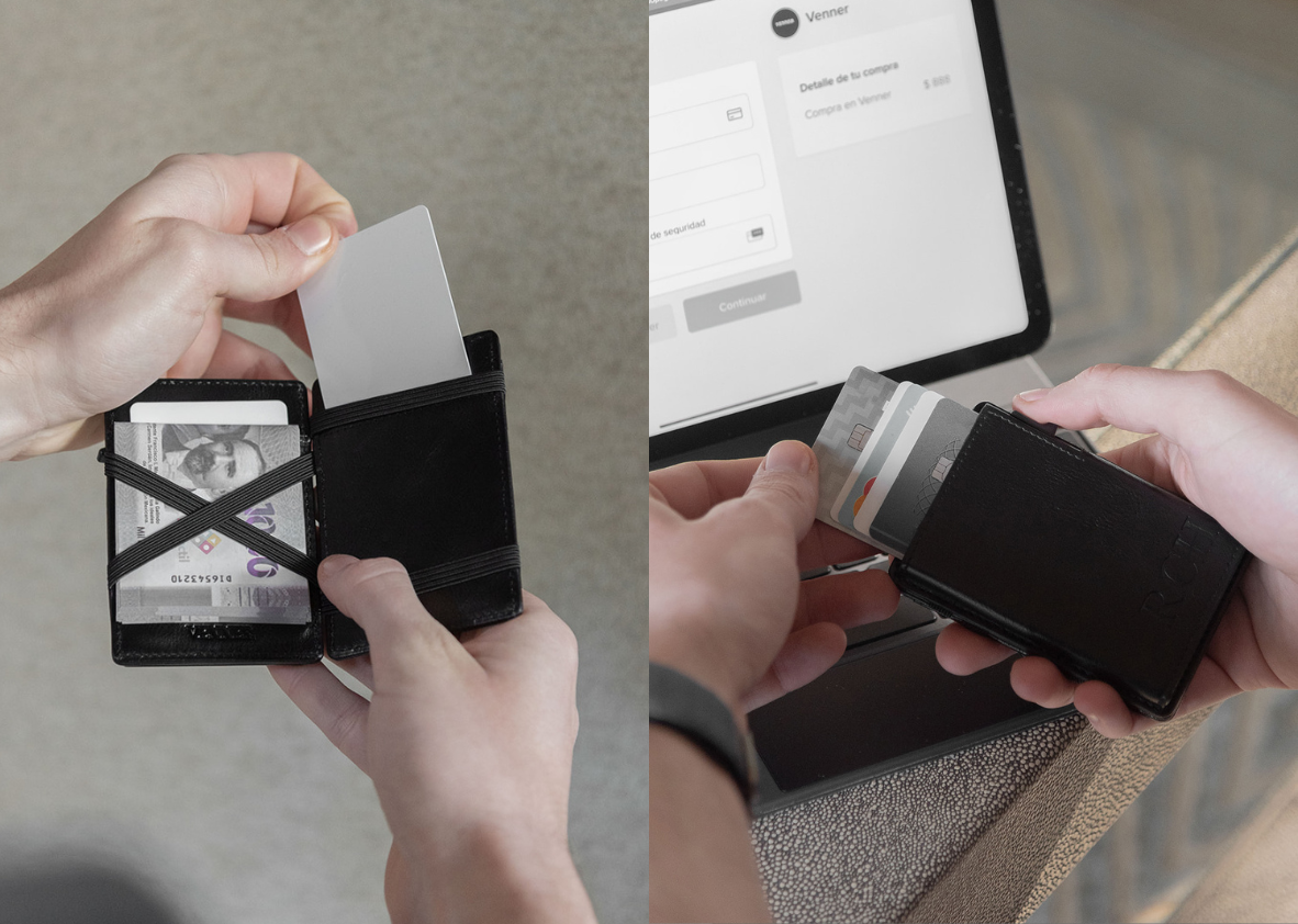 With its unique elastic system you can store +25 bills in your wallet without having a bulky wallet.